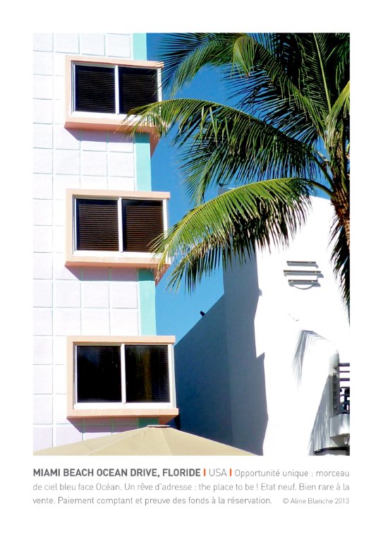 « Ces biens uniques, matérialisés par des photos, ont été glanés au hasard des rues et des villes parcourues : Berlin, Sète, Londres, Metz, Miami, New York, Paris, Barjac, Bruxelles, Fethiye, Venise,